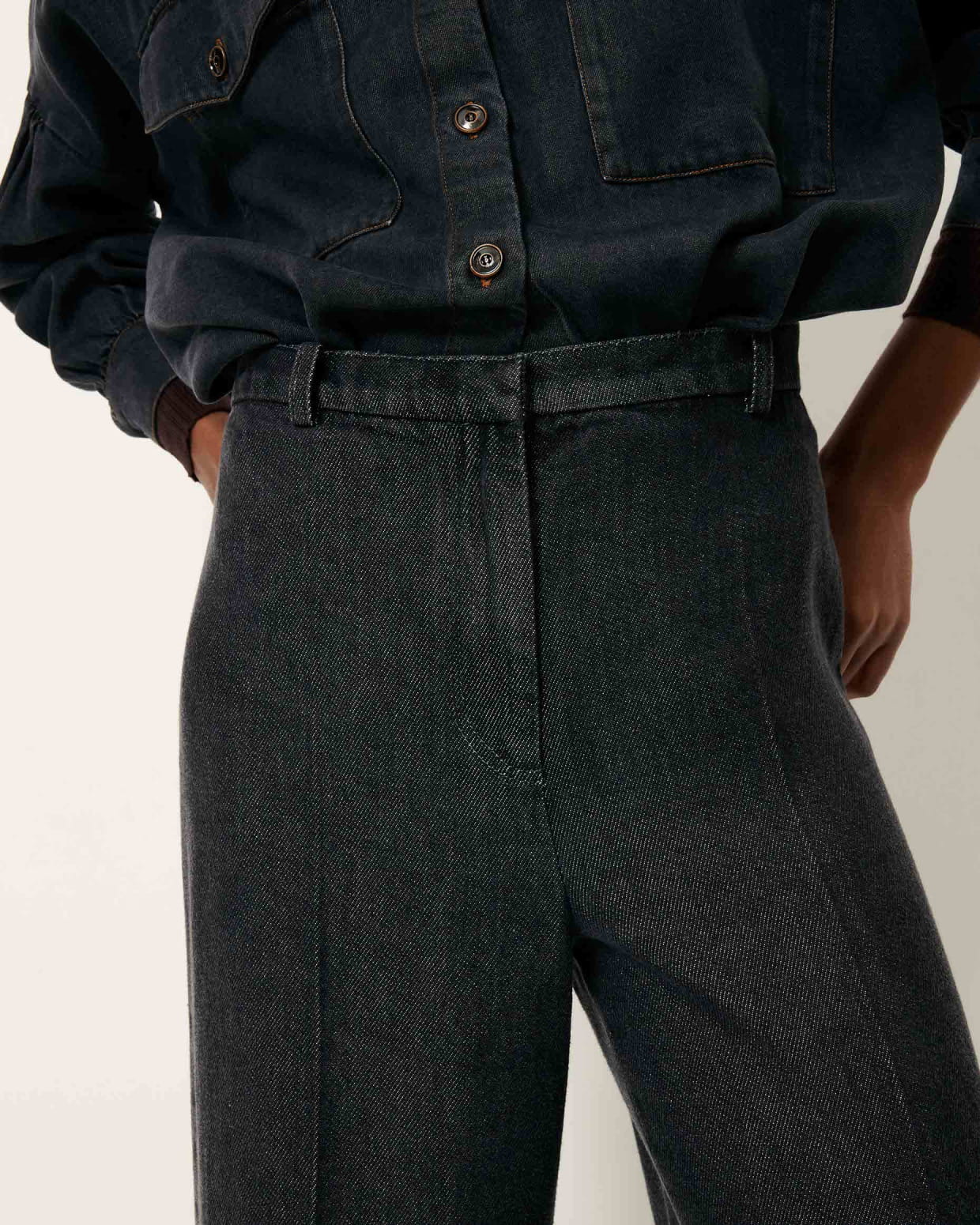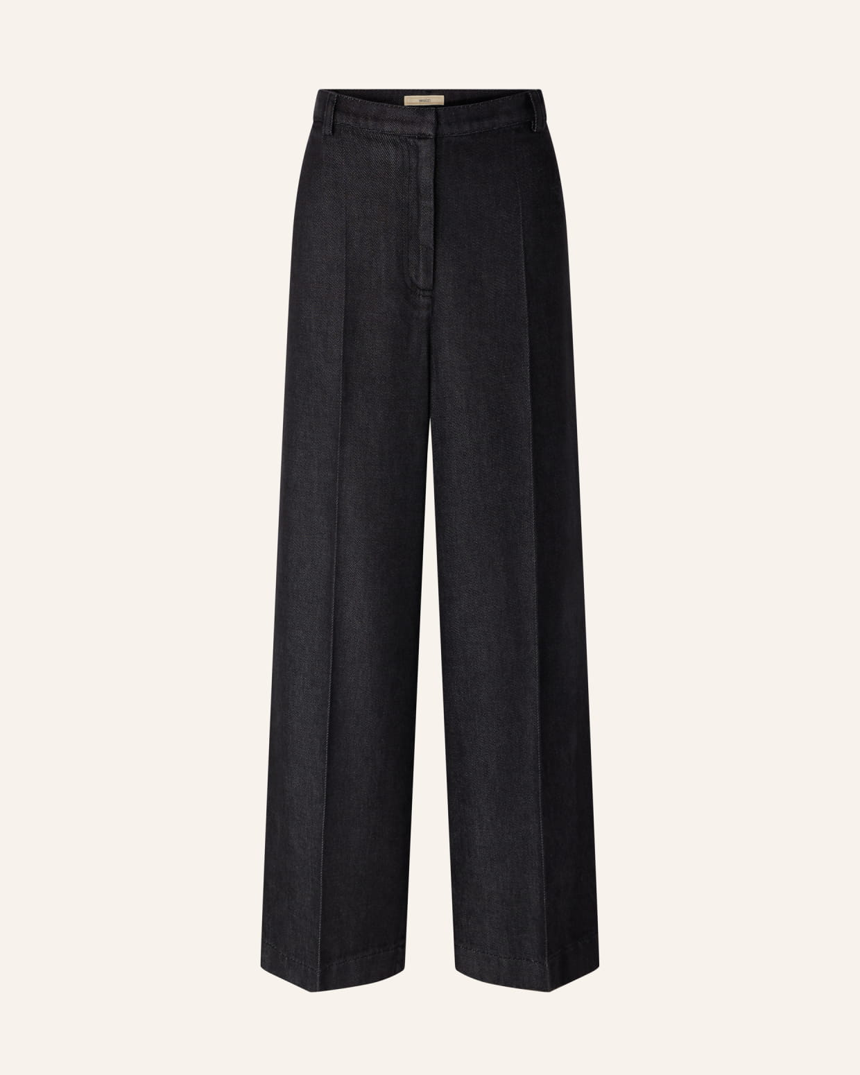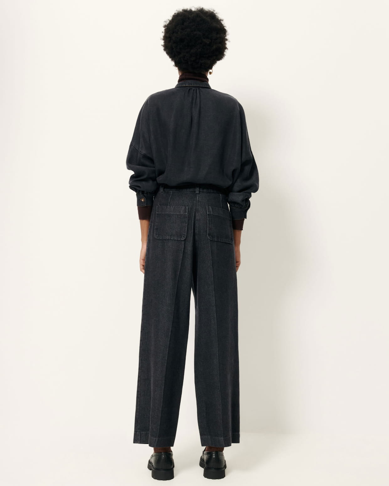 Straight pants with defined pleats in a heavyweight, fluid, stonewash twill fabric, woven in Spain. High waisted with a concealed zipper closure with a hook and bar at the waist. Patch pockets front and back. 100% Lyocell. Machine wash cold, line dry.