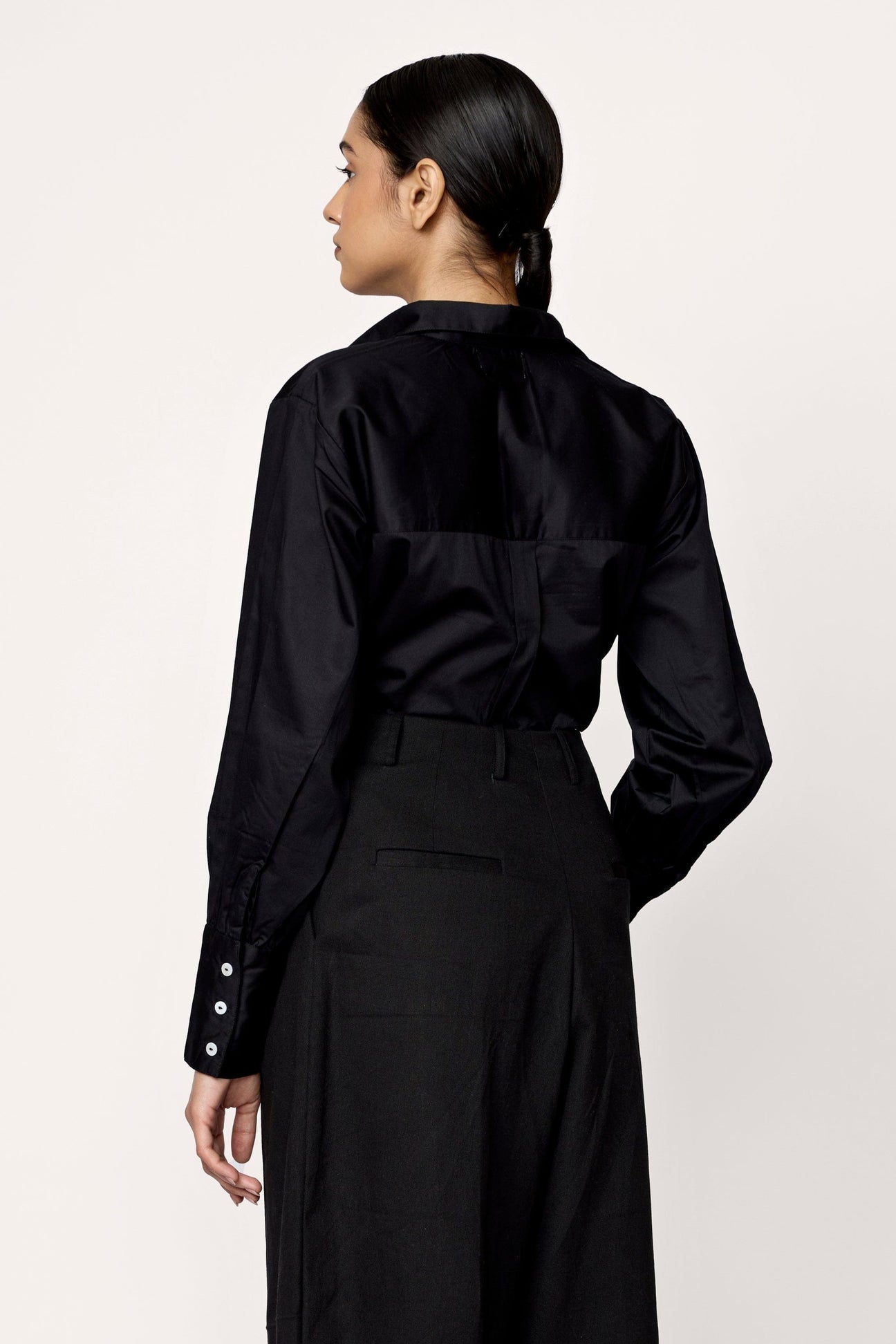 A timeless button down inspired by classic menswear. Crafted from premium organic cotton poplin with a soft-washed finish, this shirt combines relaxed elegance with sophisticated details. Its loose fit is complemented by curved hems and a single box pleat at the back yoke. Made with 100% Organic Cotton. Machine wash cold on delicate cycle, lay flat to dry, warm iron as needed