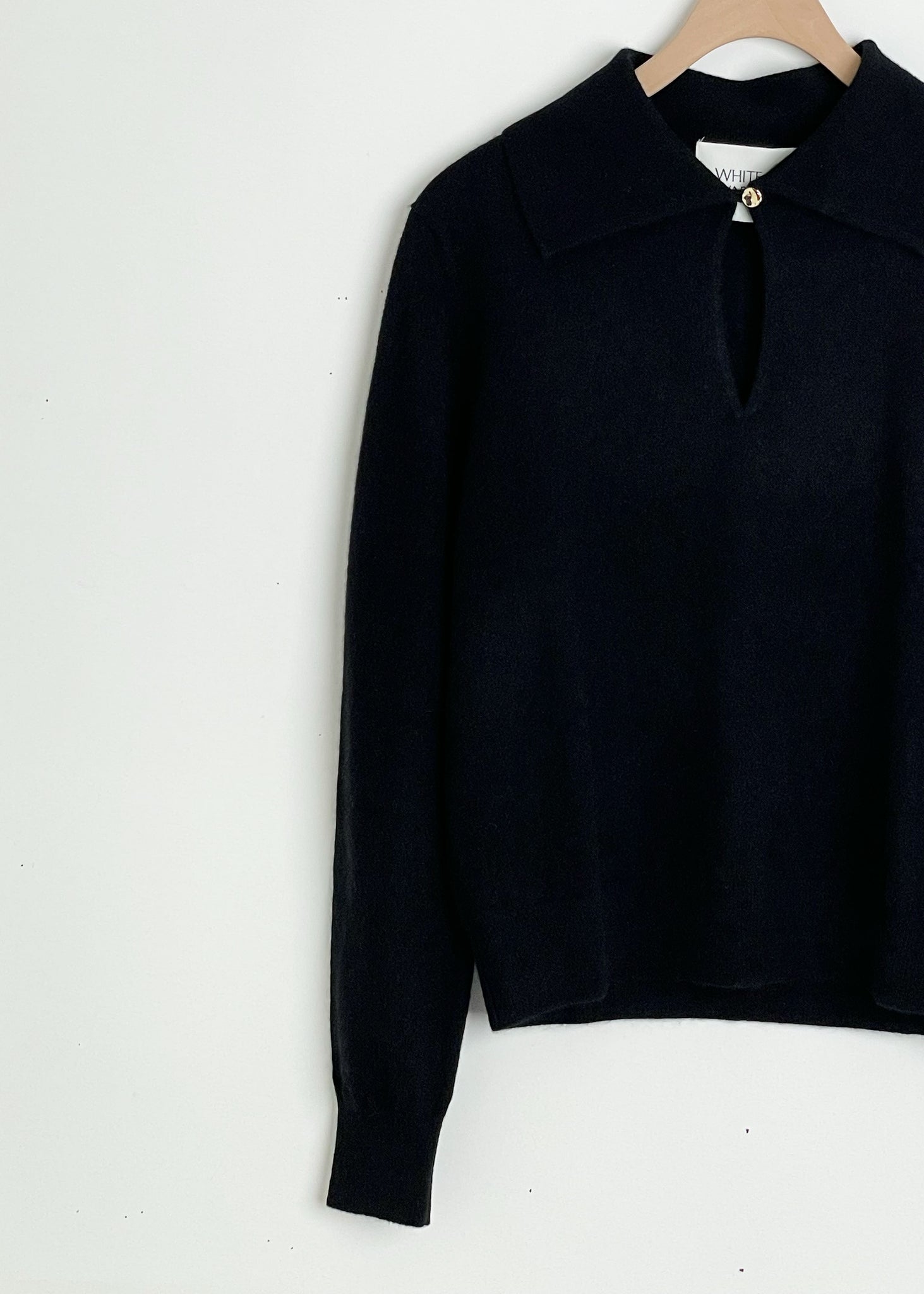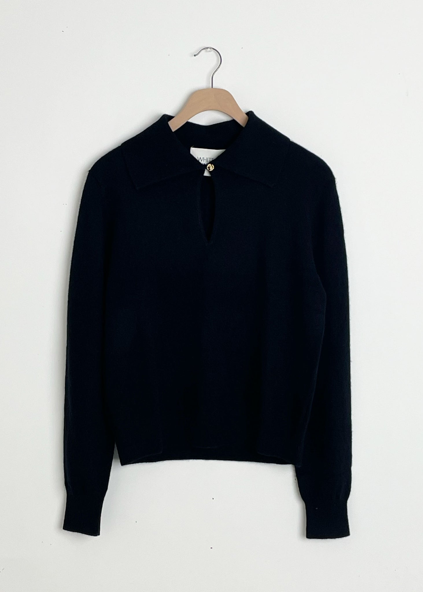 • Load image into Gallery viewer, Cashmere Keyhole Polo - Black