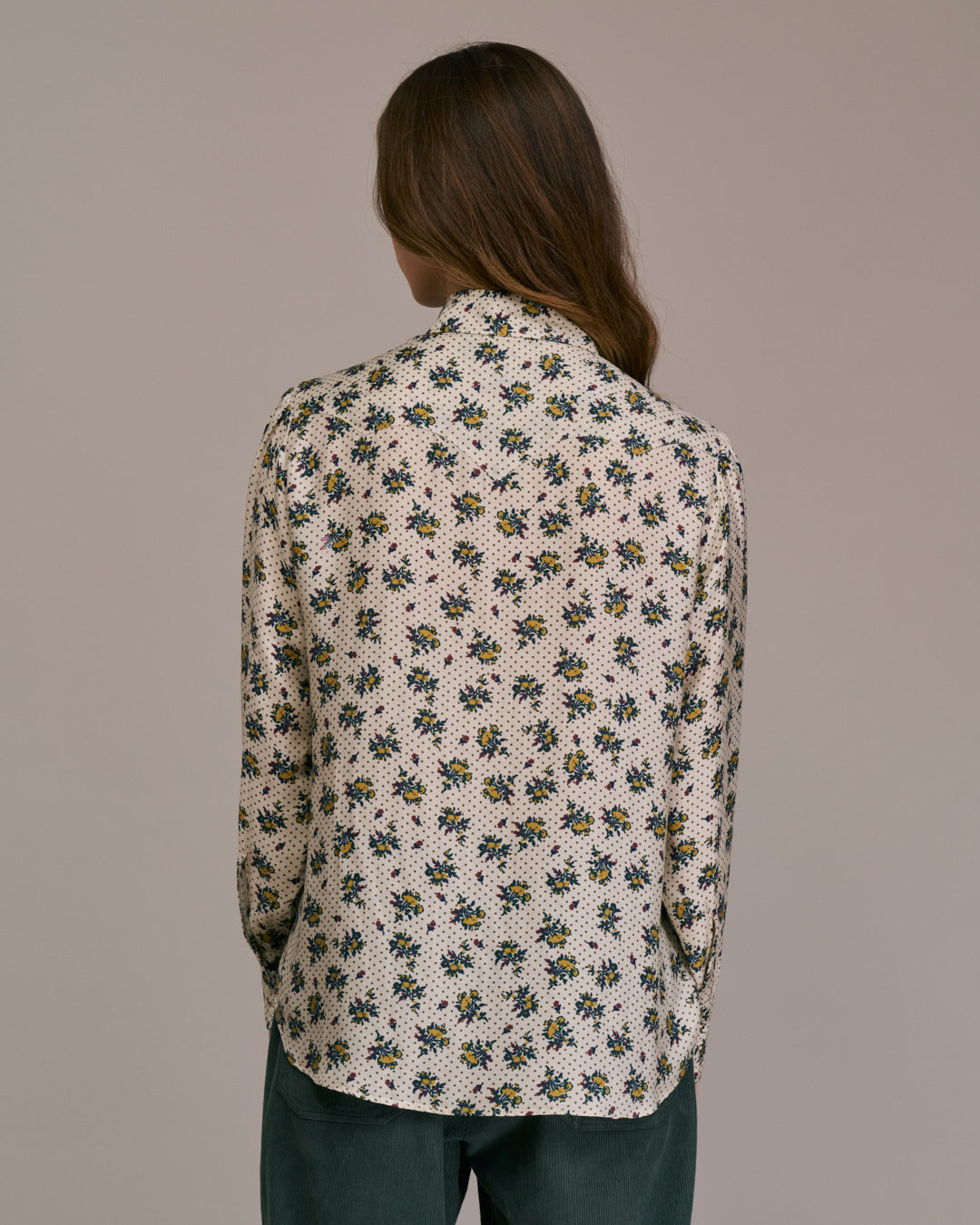 A classic flowing button up shirt with a subtle western inspired yoke. 80% Viscose, 20% Silk. Dry clean only.