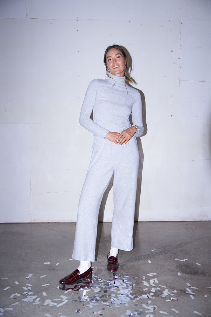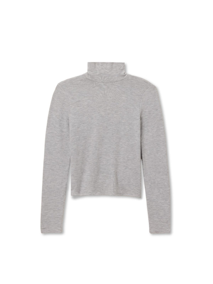 The dana turtleneck has that soft, winter-morning feel. Warm enough for frosty days, light enough to wear from room to room. made in our brushed sweater jersey, it has a smooth, clean look with a snug little fit that works with anything from sweats to a slip skirt. simple, warm, and quietly charming. 47% poly, 46% viscose, 7% spandex. Made in California. Size S: 20 3/4". gentle machine wash cold. do not bleach. tumble dry low. warm iron if needed.