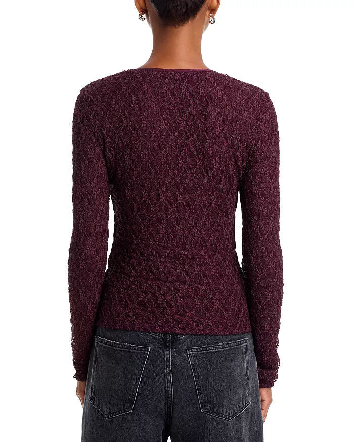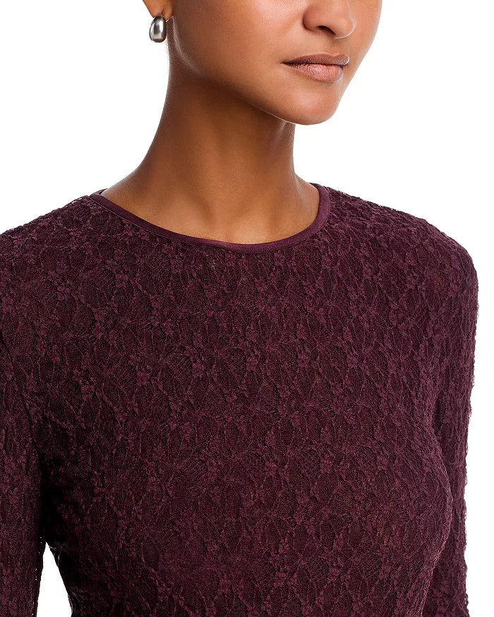 This long-sleeve top is a simple fitted silhouette with a delicate edge. Crafted from two layers of soft, stretchy lace, it's cut for a slim fit and pairs just as easily with denim as it does with leather or suiting styles.