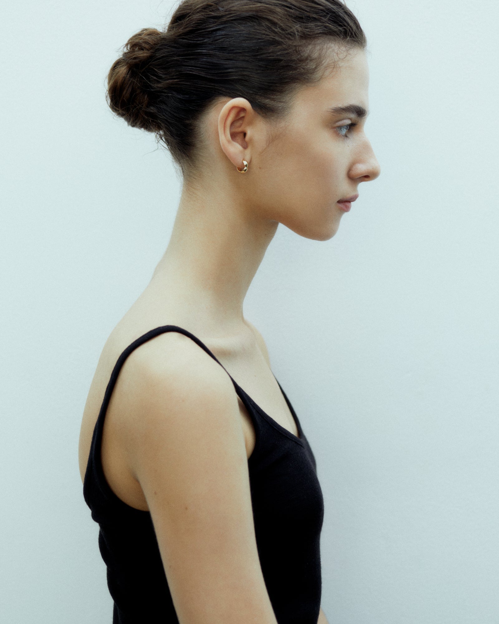 The classic hoop, redefined, featuring interlocking oval curves. This sleek, modern design adds a sophisticated touch to any ensemble. Made mainly of 925 sterling silver, with 18 karat gold plating, nickel free. Inner Diameter: 0.95 cm.