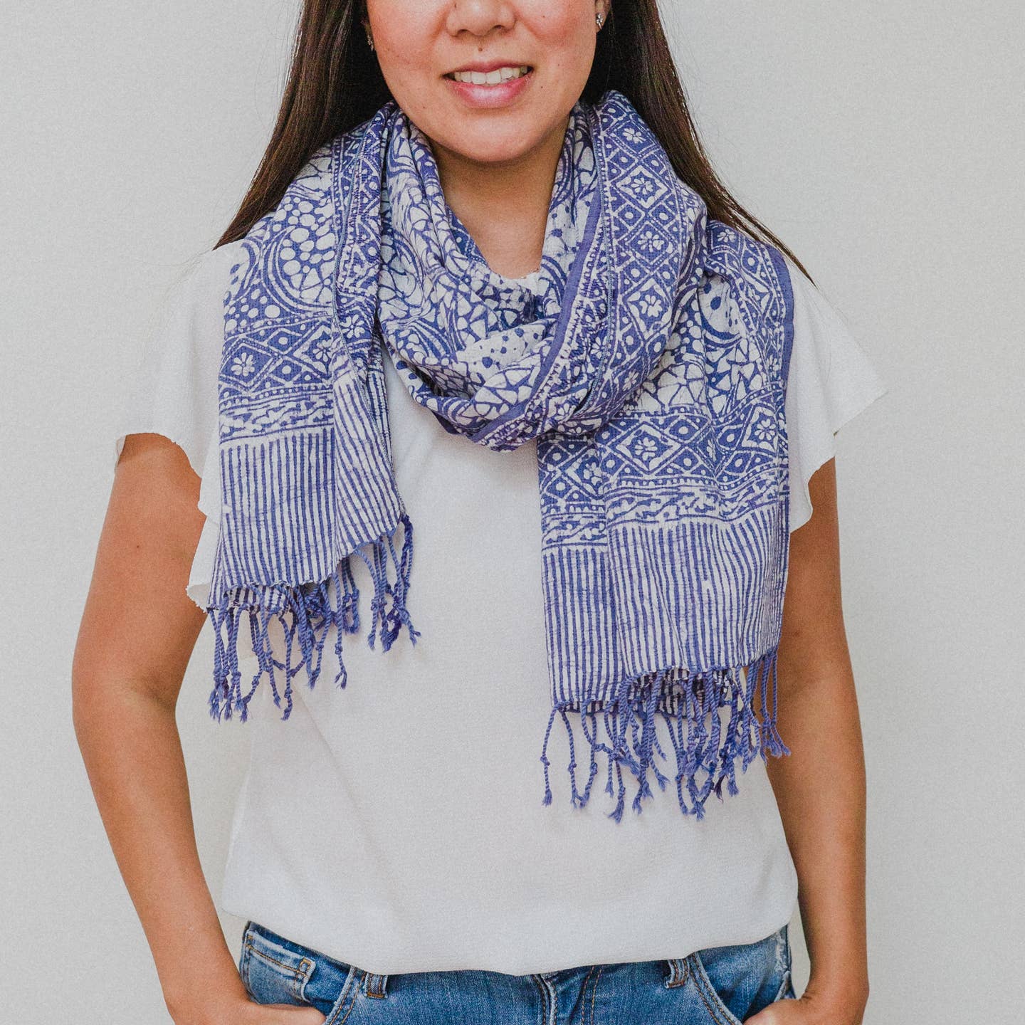 This is a washable batik scarf handmade by artisans. This fabric is handmade by artisans in Java using centuries old wax & dye batik technique.  Size: 66"x22" Made of 100% cotton fabric. Machine washable in cold and air dry. Wash batik scarf separate from other garments.