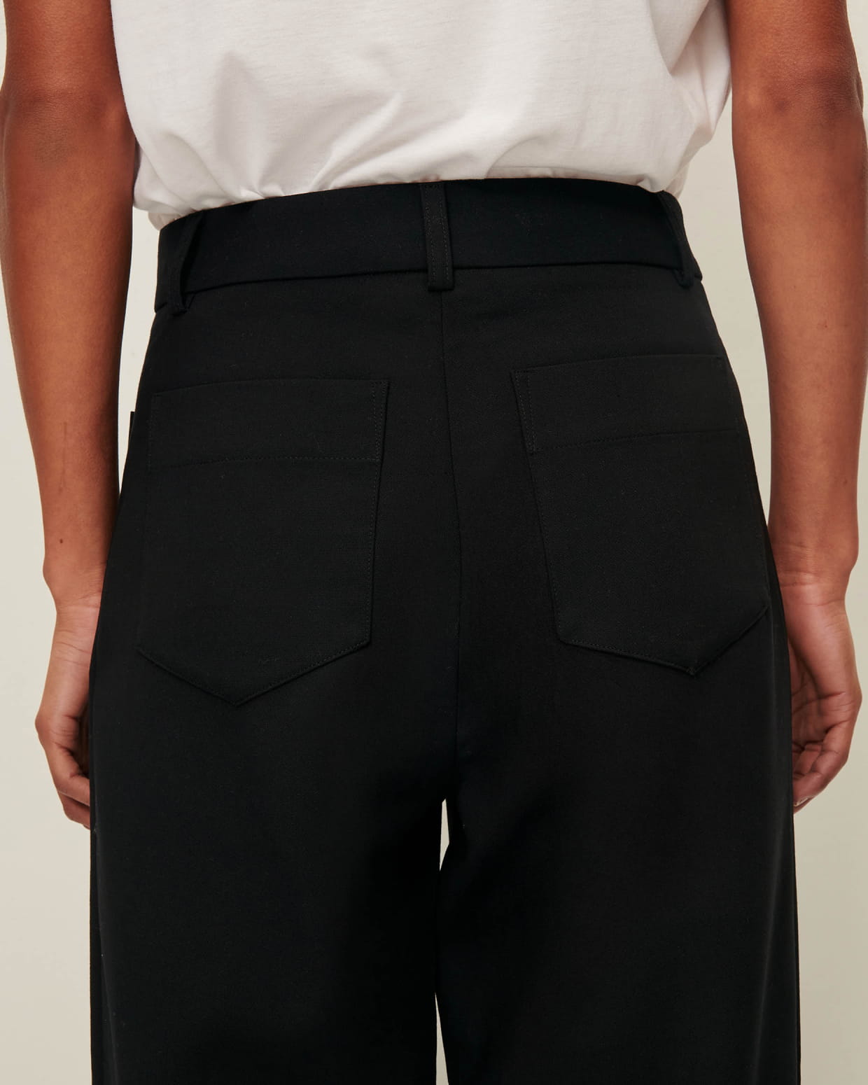 A-line pants in a broken twill. High waisted with a concealed zip closure with a button at the waist. Patch pockets at the front and back. 64% Polyester 34% Viscose 2% Elastane. Machine wash cold, delicate dry.