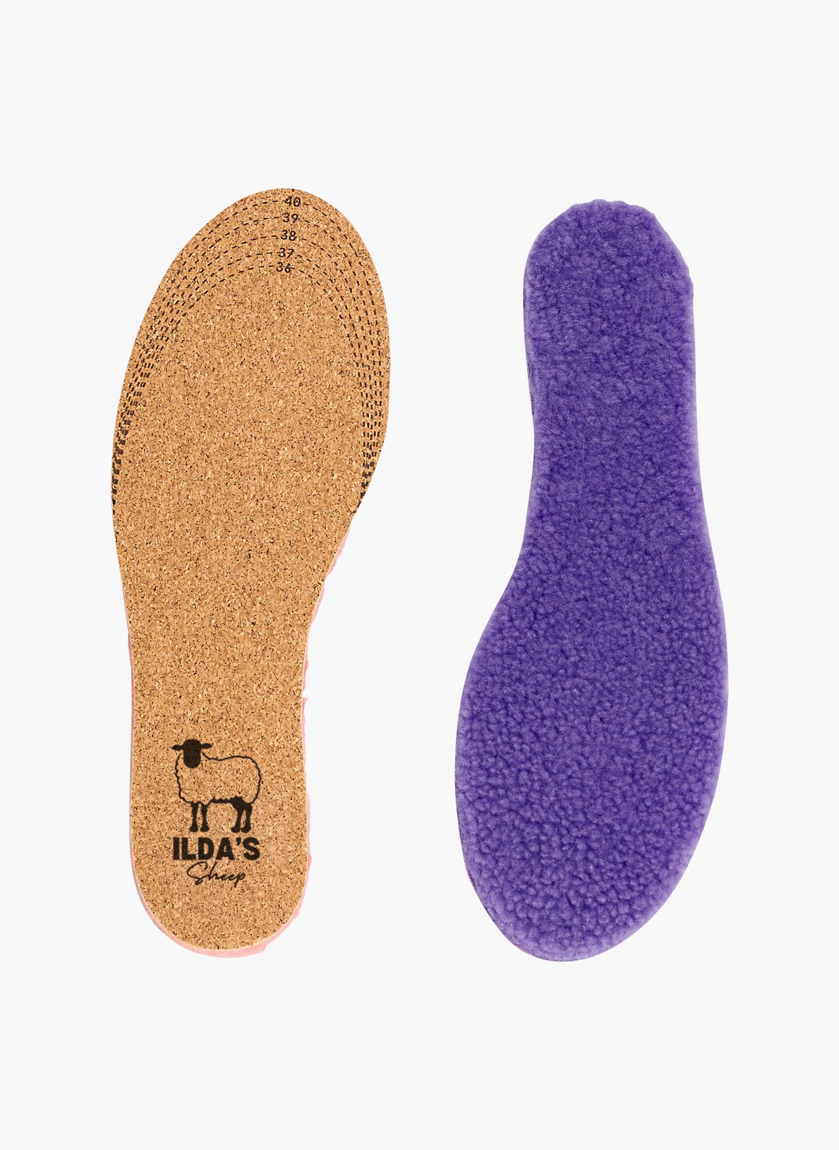 Insoles to slip into your shoes. 50% Laine mérinos 50% Cork. Made in Portugal. To be cleaned by a leather professional. Cut to size, fits most women's sizes 36-40