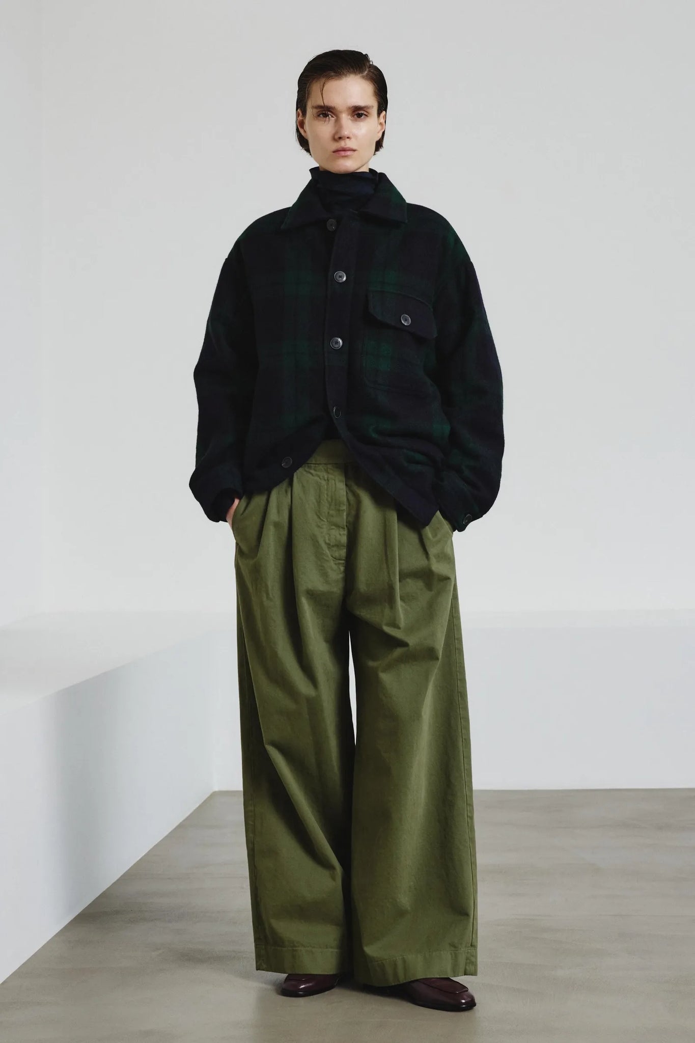 Refined materials give a bold twist to traditional shirting, reimagined here as outerwear in this version made of padded pure virgin wool tartan that adds volume and warmth. A rich pattern enhances the entire silhouette, which unfolds in a relaxed shape with slightly dropped shoulders and wide sleeves. This garment has an oversized fit. 100% Virgin Wool. Made in Italy