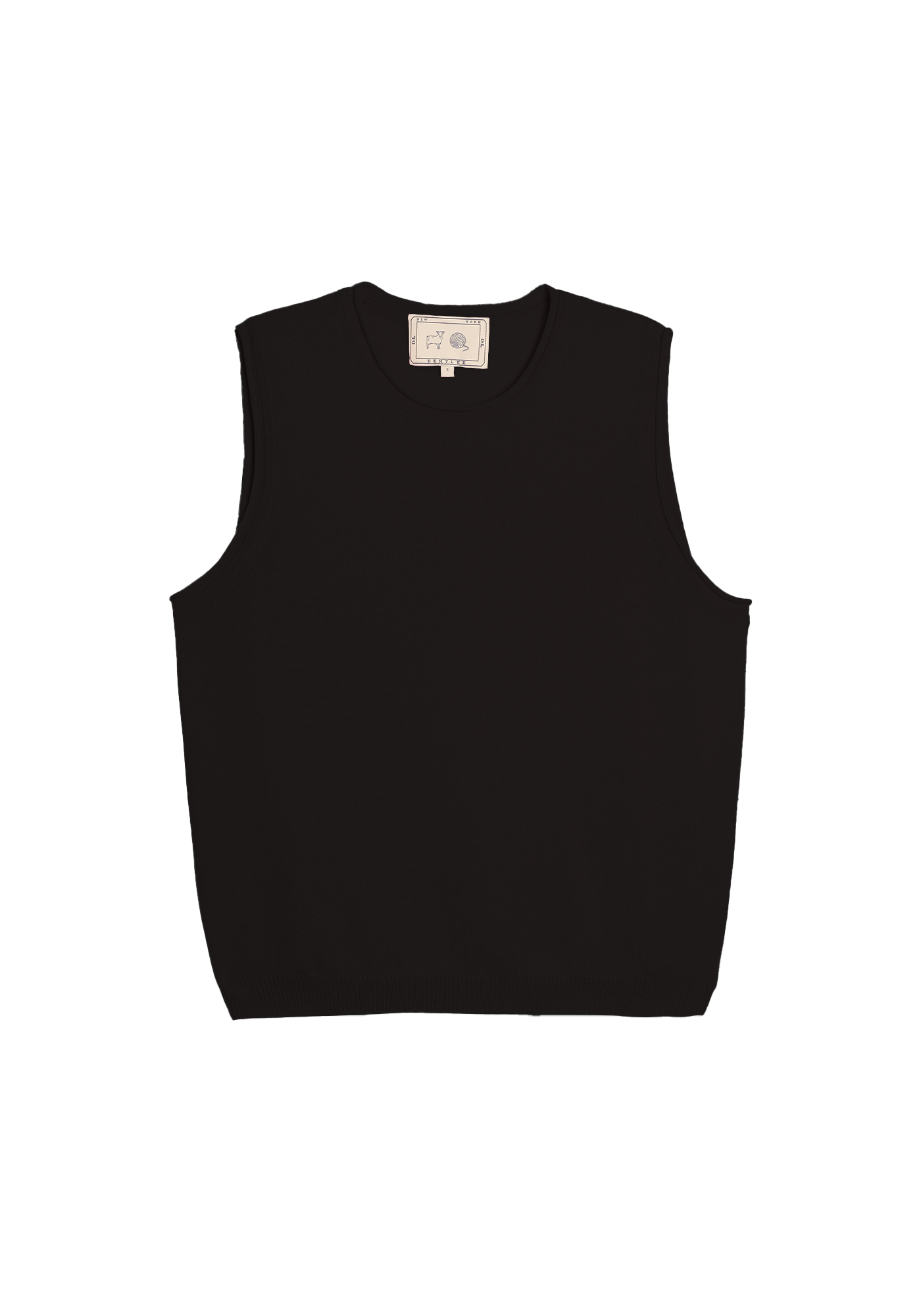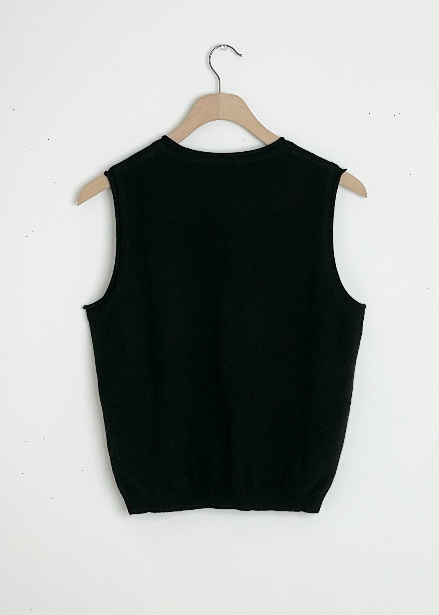 Sleeveless top with jersey-rolled edges at neckline and arm openings. Easy, versatile piece with regular fit. 100% cashmere. Size S length 20.5". Dry clean only