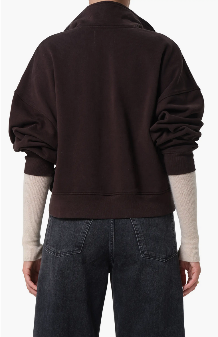 The ‘Mirelle’ is a modern update to the classic sweatshirt, crafted from soft brushed fleece with a plush, cozy feel. Designed with a high funnel neckline and button closure, the relaxed silhouette offers warmth and polish in equal measure. Ideal for off-duty layering or elevated lounging. 100% Cotton. Machine wash cold, tumble dry low.