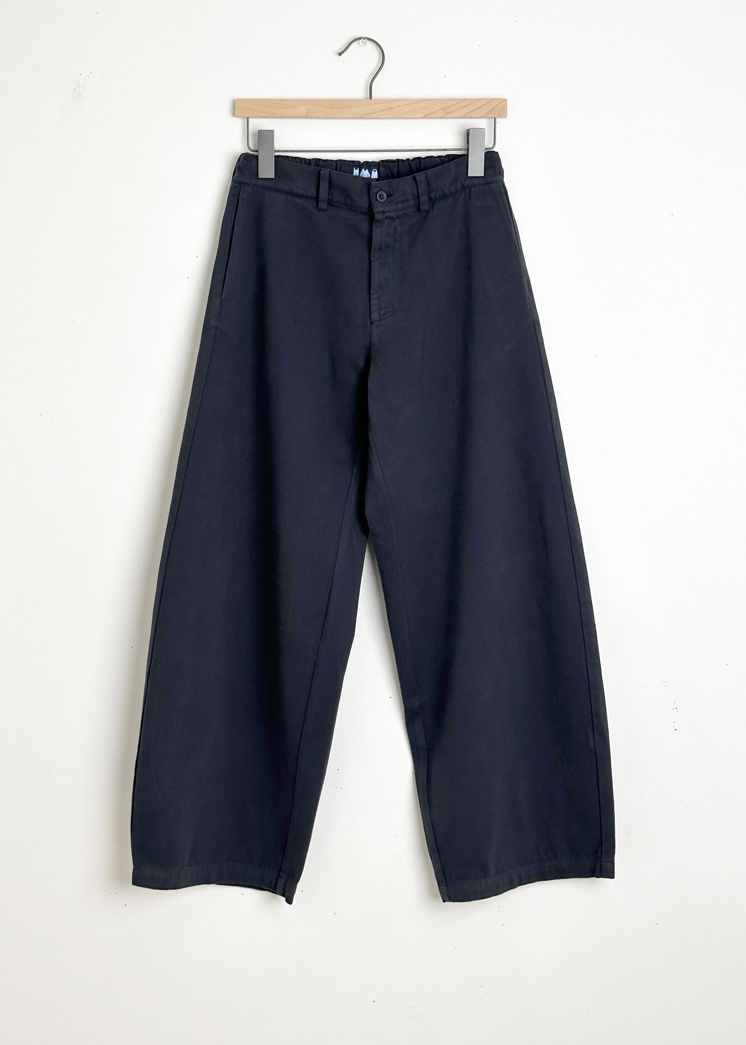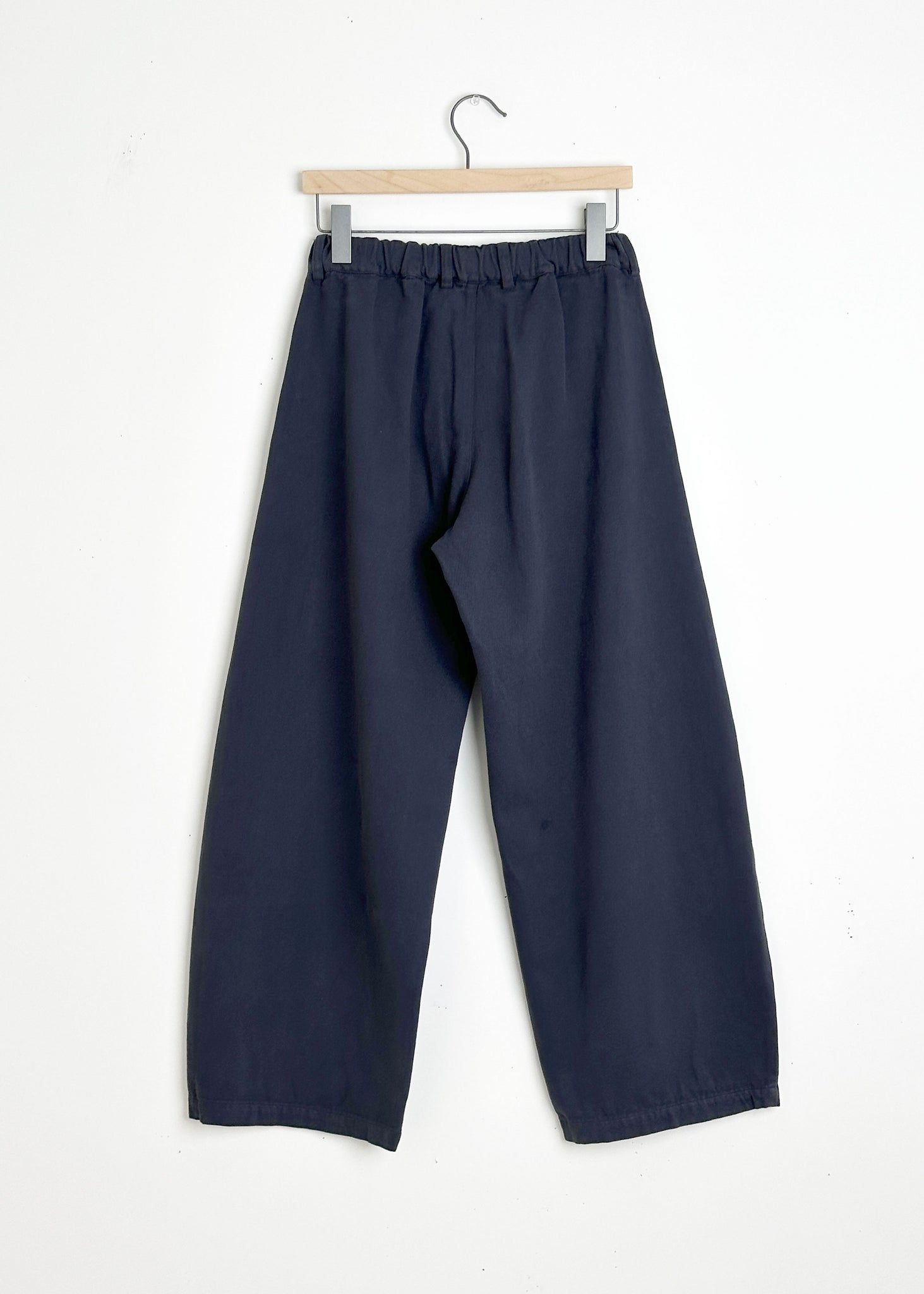 Softest brushed cotton. Smooth texture. Loose fit with elasticized waistband on back panel with smooth flat front. Leg shape is full, slightly tapering at hem, for a softer new barrel shape. Made in Italy. 100% cotton . Fits true to size. Inseam on size 1 measures 29" Size guide: 0=XS/S, 1= S/M 2= M/L