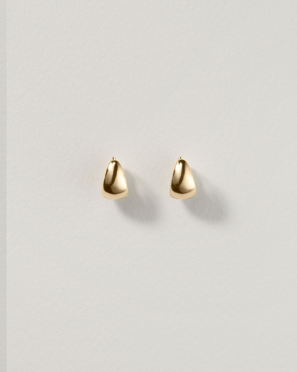 petite pair of hinge hoops with a gently sloping curve—designed to hug the lobe and offer just enough sheen for everyday wear.  Sizing L 0.5” / 1.2cm. 14k gold plated.