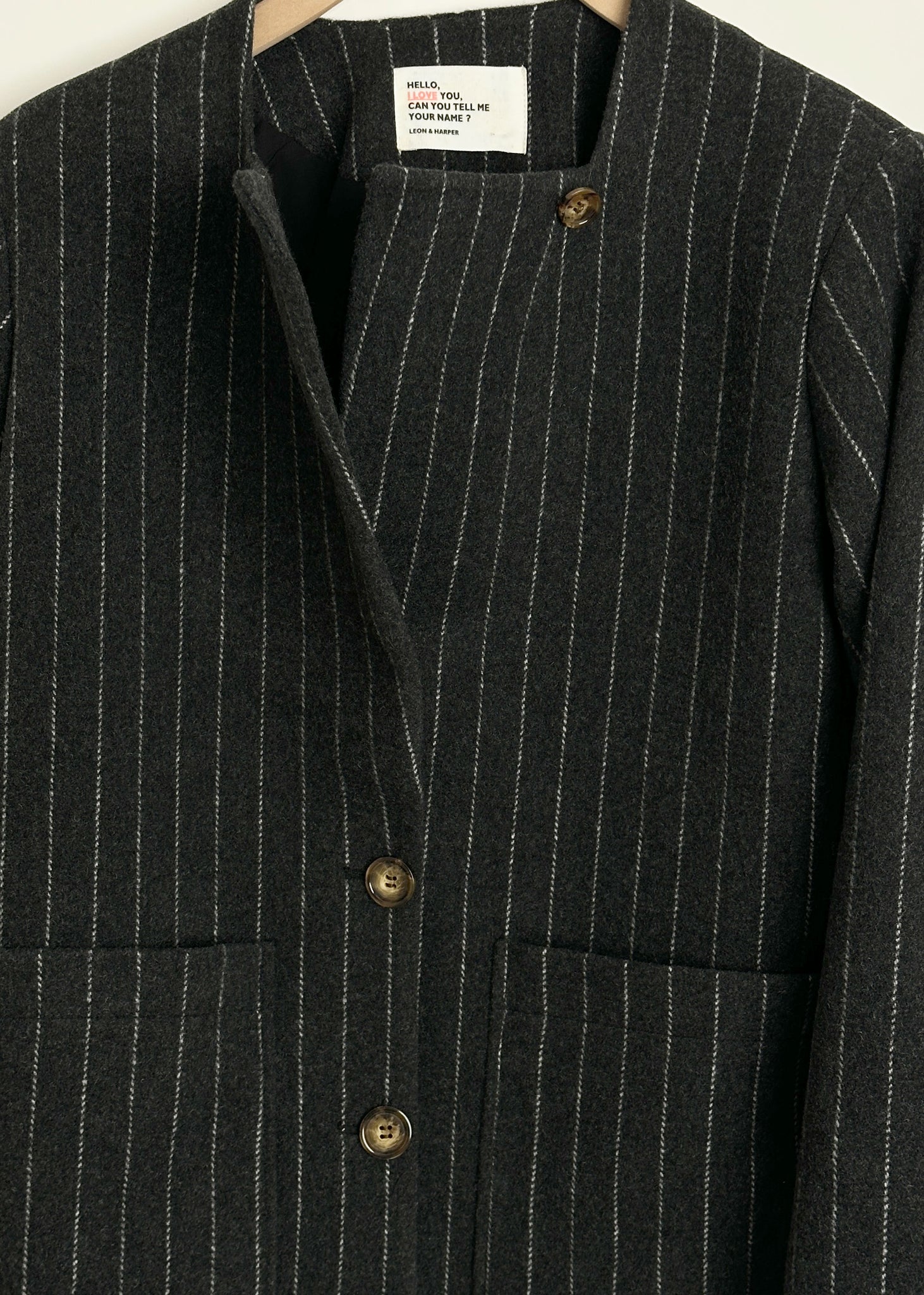 The Vafi Strp jacket embodies a look dear to Leon & Harper with its straight cut and fluid drape, ideal for a confident silhouette every day. The slightly scooped collar and asymmetrical buttoning reveal a subtle graphic identity, while the fine vertical stripes structure the piece. The patch pockets on the front add a practical and refined touch. Easy to wear open or belted, this jacket creates a contemporary outfit with wide-leg trousers or a midi skirt. 68% Laine 20% Polyester 5% Autres Fibres 5% Polyamide 2% Acrylique . Dry Clean Only