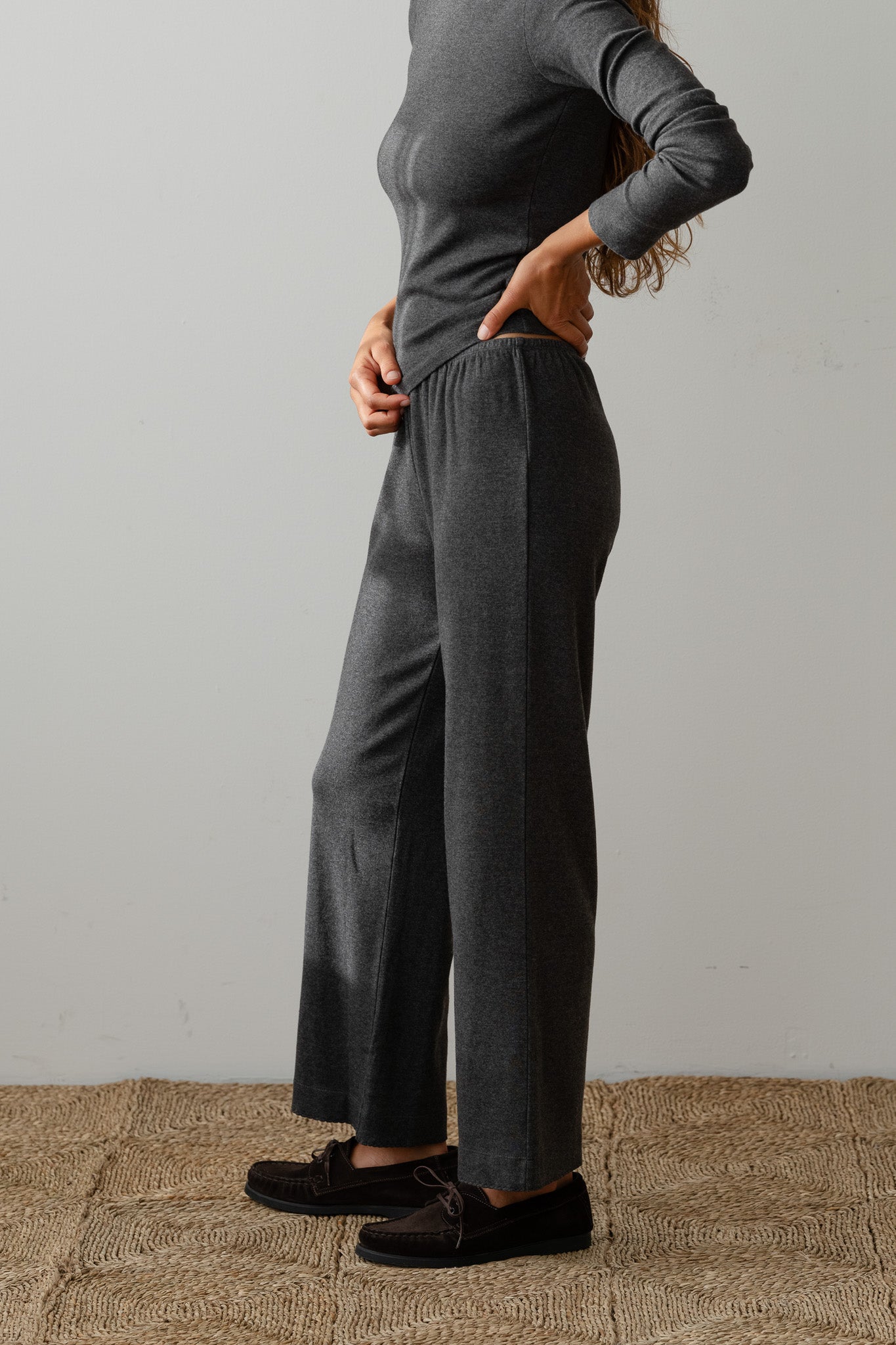 The Baby Rib Scallop Pant features a buttery-soft feel, straight-leg silhouette, and scalloped trim. Designed with an elastic waist, cropped length, and subtle baby rib texture—easy to style, effortless to wear. Made in Los Angeles. 47% Modal, 47% Cotton, 6% Spandex. Machine wash cold delicate cycle with like colors, do not spot treat. No bleach, lay flat to dry.