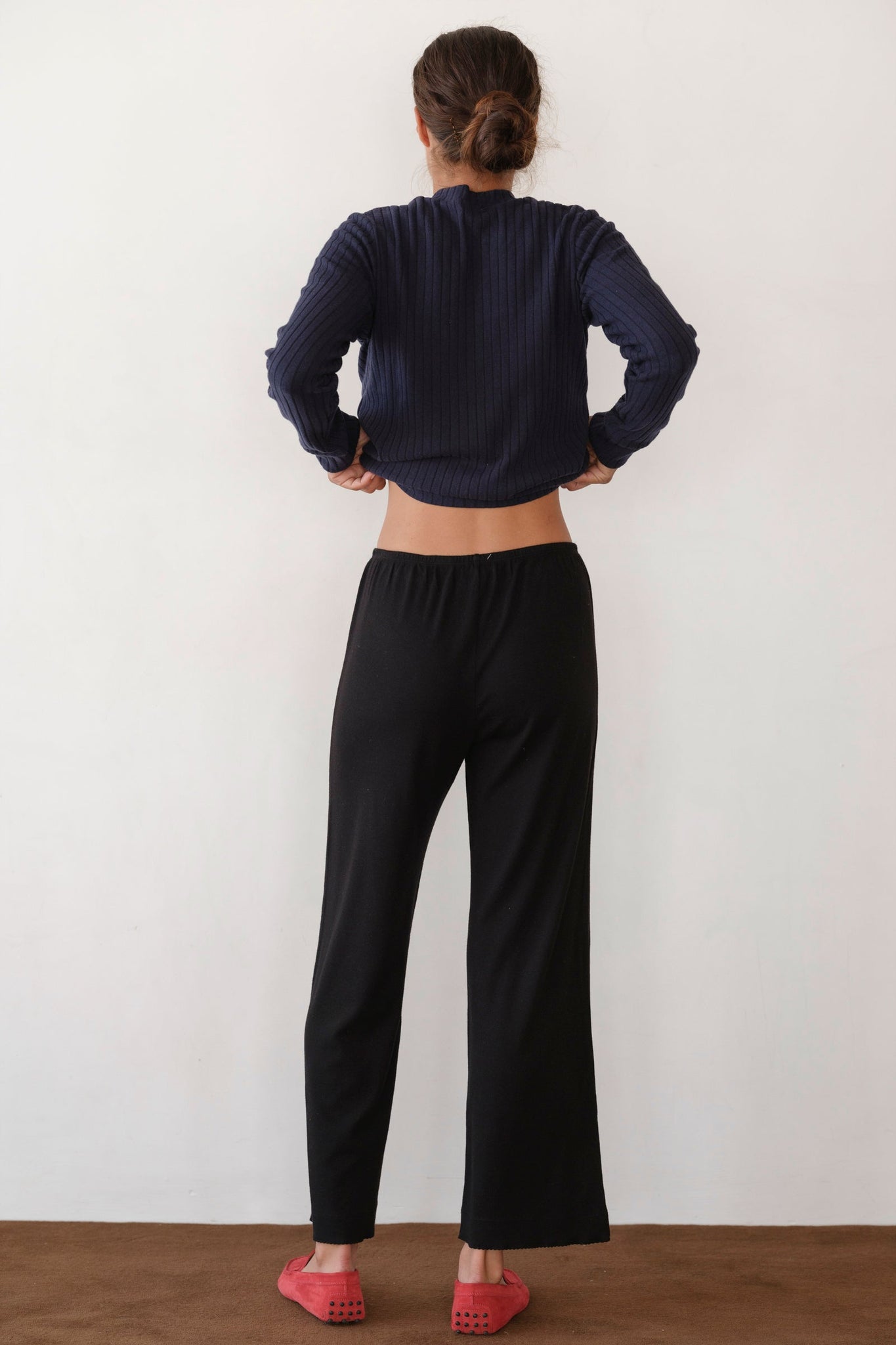 The Baby Rib Scallop Pant features a buttery-soft feel, straight-leg silhouette, and scalloped trim. Designed with an elastic waist, cropped length, and subtle baby rib texture—easy to style, effortless to wear. Made in L.A. 47% Modal, 47% Cotton, 6% Spandex. Machine wash cold, tumble dry low.