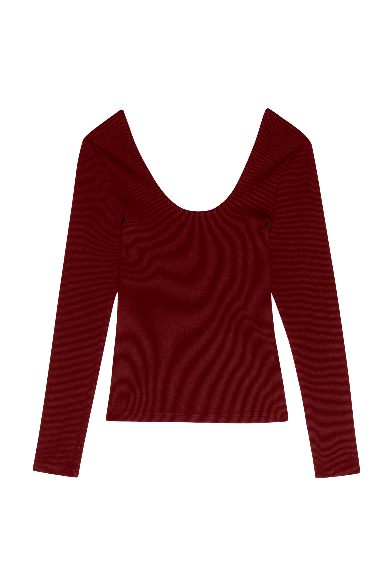 The Rib Scoop Long Sleeve is crafted from a rib fabric and reimagined in a versatile scoop-neck silhouette. Designed to wear anywhere, it features a flattering neckline at both the front and back, and a fine rib texture that offers the perfect amount of hold—no bra required. Made in L.A. 47.5% Cotton 47.5% Modal 5% Spandex. Machine wash cold with like colors. Do not spot treat. No bleach. Tumble dry low..