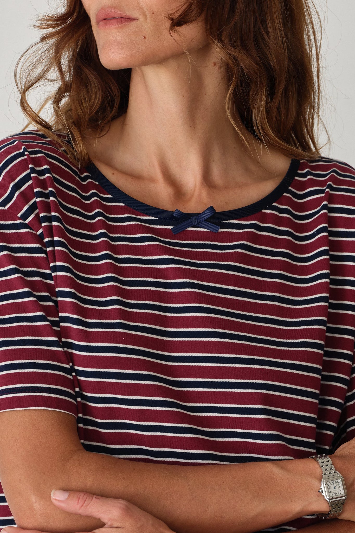 The Stripe Jersey Oversized Bow Tee - Oxblood