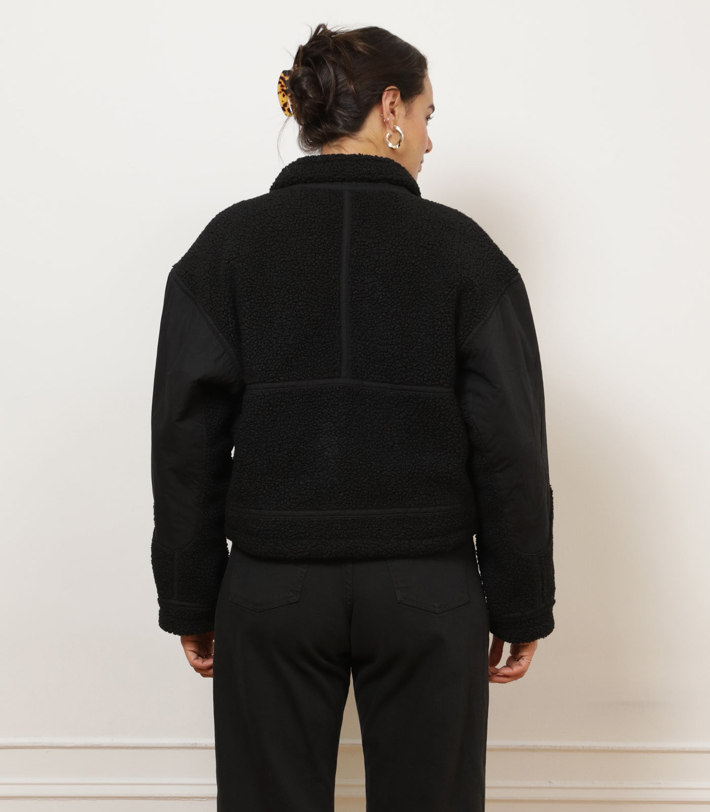 Cozy cropped faux-shearling bomber that you wont want to take off! Runs true to size and is meant to be worn a little oversized. Size S: 21.5" length. 100% Polyester. Machine wash, line dry.